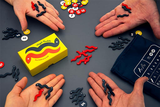 Oink GamesPlayers: 2-8Ages: 7+Time: 20 Minutes In Wriggle Roulette, players take turns reaching into a bag filled with eel- and snake-shaped wooden pieces, t...