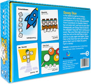 Doozy Dice is a quick dice rolling game where players use 5 dice to match unique “doozy” combinations. At the start of the game, the 26 doozy cards are shuffled and 5 are dealt in the center of the table. These are the 5 doozy combinations each player will need to complete during this game. Players take turns rolling the dice and making combinations in as few rolls as possible. Two of the dice come with a doozy face on one side. These are either needed to complete a combination or act as a wild.