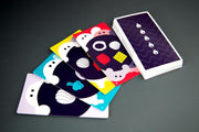 To start the game, each player has a hand of five items: a red plastic cube, a blue wooden key, and so on. Each round, someone flips the top card of the deck, then players race to drop only the correct items from their hand. If you drop something you shouldn't, you're out for the round. If you're the first player who drops everything correctly, congratulations! You're rewarded with a tiny bell...that is placed in your hand and cannot be dropped in the future.