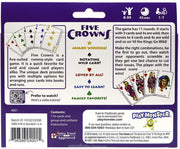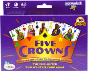 Five Crowns is a five-suited rummy-style card game that appeals to a wide array of card players! This classic game is a quick favorite features a unique double deck that contains five suits: spades, clubs, hearts, diamonds and stars! This special deck makes it easier to arrange your entire hand into books and runs. The rotating wild card keeps players on their toes! The game begins with three cards and 3s are wild, the next round has four cards and 4s are wild, and so on ‘til the Kings go wild! Make the right combinations, be the first to go out, then watch players scramble as they get one last chance to cut their losses! It’s a fun and addictive family game that provides great interaction for kids and adults!