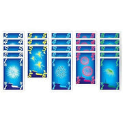 The card deck consists of five different colors of cards, numbered 1–5 in each color. For each color, the players try to place a row in the correct order from 1–5. Sounds easy, right? Well, not quite, as in this game you hold your cards so that they're visible only to other players. To assist other players in playing a card, you must give them hints regarding the numbers or the colors of their cards. Players must act as a team to avoid errors and to finish the fireworks display before they run out of cards.