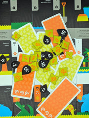 Some animals have begun their migration, going around and around in search of a new place to live. Hippos that love both water and land. Huge elephants. And bears that just want to be left alone. "Uhhhh," you can't help but growl as the cards go around. You want to secure the perfect spot, but should you choose a location or an animal first? Take one card at a time and pass the rest around in this "drafting" style game.