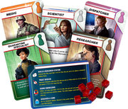 Whether there are two players or four, everyone must work together applying their various skills to benefit the team—and the world. To that end, at the start of the game, each player takes one of seven role cards that grants a special ability. The Scientist, for example, only needs four cards of the same color to cure a disease, and the Dispatcher can move other players’ pawns as their own. Each role opens new possibilities and syncs with the other roles, so players can devise new strategies to help the team most effectively.