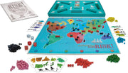 Features an oversized bi-fold game board with original style art. 6 sets of beautiful wooden army pieces, Deck of area cards with original style art. High quality dice (2 white and 3 translucent red).
