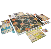 Cardboard Pieces. 15 Buildings, 9 Tokens, 3 Victory Point Markers, 1 Outcast Marker, 9 Relationship Markers, 11 Items, and 17 spare pieces with letter backs for future scenarios.