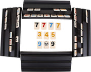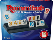 It's no surprise that Rummikub is so popular - it has all the elements that make a great game: it's easy to learn and fast moving, it's different every time it's played, it combines luck and strategy, and it changes quickly so every player has a chance to win until the very end. Players take turns placing numbered tiles in runs (consecutive numbers of the same color) and groups (three or more of the same number in different colors), Rummy style. It's easy to learn, but packed with strategy - the "board" changes all the time as players adjust the tiles on the table. The Joker tiles add to the fun and can be played as any color or number. Be the first player to play every tile on your rack to win! Rummikub is ideal for people of different ages to play together, and reinforces STEM and STEAM concepts such as sequencing, pattern recognition, and planning skills. This set includes 106 playing tiles with bright over-sized numbers, 4 plastic tile-holder racks, and complete instructions. For 2-4 players, ages 8 and up.