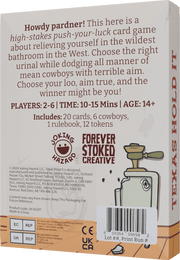 Dive into the wild, unpredictable world of Texas Hold It! This high-stakes card game invites you to embrace your inner cowboy as you navigate the most notorious restroom in the West. Can you outsmart your fellow players and dodge those mean cowboys with less-than-stellar aim?