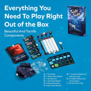 Constellations, asteroids, comets, planets, and black holes all score differently! With 10 modular scoring conditions in the box, you can mix and match for 32 different setups. Whoever finds their highest score in the stars wins.