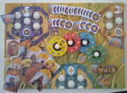 Maharaja is a new edition of the classic game by the authors Wolfgang Kramer and Michael Kiesling. In this new version of the game which supports 1 to 4 players and is enriched with new graphics and components, you build statues of your God of reference to please the Maharaja during their visit and score victory points at the end of the game depending on the majority you reach.