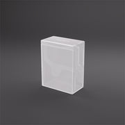 The Bastion 50+ is a very compact and rock-solid deck box to safely protect up to 45 doublesleeved cards in Thick Inner Sleeves. It is ideal for decks with 55+ double-sleeved cards in standard inner sleeves and also holds Mini Snap and Slide Card Cases as well as Cube Pockets. Due to translucent materials and smart positioning of the closing flaps, the top card is fully visible from the outside without opening the box. The innovative secure click-lock mechanism protects your deck while still allowing easy access. The Bastion consists of 2 symmetrical parts that easily convert into a card pile and discard pile holder. It is perfect for a huge variety of trading card games.