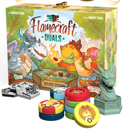 Ever wondered what the dragons of Flamecraft do on their lunch break? Play Flamecraft Duals, of course! Set in the world of Flamecraft, Duals is a two-player travel-friendly game of pattern-making and quick, puzzly fun! You will meet the artisan dragons again with new powers, and this time the challenge is to get your dragons in a row. As you draw dragons, you might get lucky and come across a rare dual-colored Hydragon, with double the artisanal skills! As you play, the board will fill up with adorable dragons, stacking and soaring across the table, and you will work to fire-up their abilities, make matches, and complete shop cards.