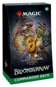 • GET ALL 4 BLOOMBURROW COMMANDER DECKS—Make trash and smash with Animated Army, make offspring and go wide with Family Matters, make friends and then end them with Peace Offering, or hoard tokens to defeat your enemies with an army of squirrels with Squirreled Away