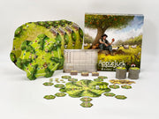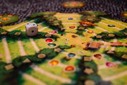 A wide orchard lies in front of Applejack's cottage. Help him and his daughter plant apple trees and harvest the juicy apples. Don't forget to set up the beehives between the trees. Because at the end of this game, whoever gets the most honey wins!On their turn players choose 1 tree tile from the harvest board in the middle of the table. This tile shows a combination of types of apples and apple blossoms as well as beehives. The beehives show the cost for the tile in honey. The tree tile will be placed on the players orchard. The beehives need to be places next to other beehives on tiles already in play in order to get the players honey tiles. When the Applejack die on the harvest board comes across an apple icon this type of apple will be harvested - again gaining the players honey tokens. But only if they arranged the apples in a meaningful way. After 19 turns each players orchard is filled and the final scoring takes place. Apples, apple blossoms and collected honey will be scored. Whoever has the highest score will win a game of Applejack!