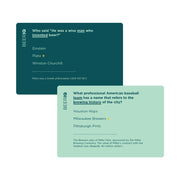 Our thematic IQs are the ultimate games for a fun quiz night. They come with 400 multiple-choice questions. Correct answers are counted as IQ points.They are played in teams over two rounds. The first round tests your knowledge. The second round tests your memory, making the game accessible and fun.