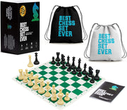 The Best Chess Set Ever 4X Tournament takes the best of the chess world and compiles it all in one place. The Staunton-style chess pieces are large, easy to handle, and have a quadruple-weighted, felted base that makes them perfect for indoor or outdoor play.