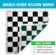 This 20” x 20” x 1mm silicone chess board is ideal for players of all ages. We chose silicone since it's spill resistant and always wipes clean, you also don’t have to worry about creases in the board when you fold it up in the box! Use the algebraic notation to follow along with puzzles or learn strategies more quickly!