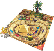 In Camel Up, up to eight players bet on five racing camels, trying to sus out which ones will place first and second in a quick race around a pyramid. The earlier you place your bet, the more you can win — should you guess correctly, of course. Camels don't run neatly, however, sometimes landing on top of another one and being carried toward the finish line. Who's going to run when? That all depends on how the dice come out of the pyramid dice shaker, which releases one die at a time when players pause from their bets long enough to see who's actually moving! This 2018 edition of Camel Up features new artwork, a new game board design, a new pyramid design, engraved dice, and new game modes, including crazy rogue camels that start the race running in the opposite direction! You never know how a race will end!