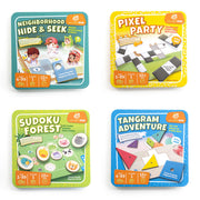 This beautiful set includes Neighborhood Hide and Seek, Tangram Adventure, Pixel Party, Sudoku Forest, and an exclusive promo pack featuring content for all four games inspired by Chip Theory Games classics!