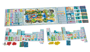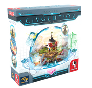 -Civolution is a complex strategy game by Stefan Feld where players trigger actions from an ever-evolving technology matrix utilizing a novel dice selection mechanic. Each player must navigate a path to victory through careful development across disciplines represented by 160 unique research cards. Players will explore the map, search for resources and food, build structures, and evolve their tribes over multiple eras.