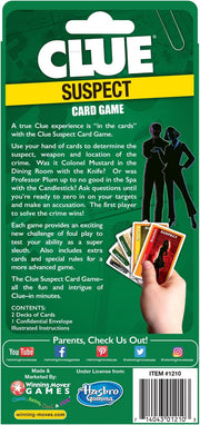 A true clue experience is “in the cards” with the “clue suspect” card game. Played clue before? this game is very similar. Use your hand of cards to determine the suspect, weapon and location of the crime. Was it Colonel mustard in the dining room with the knife? or was Professor plum up to no good in the spa with the candle stick? ask questions until you are ready to zero in on your target and make an accusation. The first player to solve the crime wins! every time a player shows you an evidence card, you know it’s not in the confidential envelope. Put its matching case file card from your hand into your innocent pile – this is like crossing things out on a clue notepad. Each game provides an exciting new challenge of foul play to test your ability as a super-sleuth. PLUS the perfect travel game for clue fans! includes extra cards and special rules for a more advanced game. Includes (2) decks of cards, (1) confidential envelope and illustrated instructions. Clue suspect card game plays in 15-30 minutes, is recommended for ages 8+. for 3-4 players.
