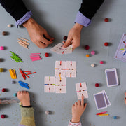In this tactical domino, place your cards on the table by connecting matchsticks of the same color. Collect the corresponding colored stick(s) as a result. The more different colors you collect, the more points you score. Swap some sticks with your opponents to increase your score and/or decrease your opponents' score.