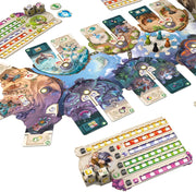 The expansion includes new dice faces and 120 new Heroic feat cards. Two optional modules – the Labyrinth of the Goddess and the Revolt of the Titans – feature alternative starting setups and new mechanics.