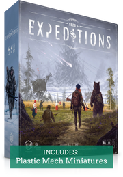 Expeditions is a competitive, card-driven, engine-building game of exploration. It is designed to evoke similar feelings to Scythe even though the mechanisms are different: Play cards to gain power, guile, and unique worker abilities; move your mech to mysterious locations and gain cards found among the tiles; use workers, items, meteorites, and quests to enhance your mech; and use power and guile to vanquish corruption.