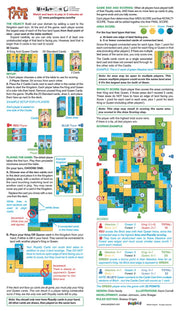 Each player uses their royalty to rule land in an ever-growing kingdom. Rule just enough territory to earn points, as too much greed will cause a revolt and a loss of points. The player with the most points rules the kingdom!