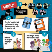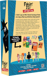 Experience the thrill of Jackbox Games Fakin’ It in a brand-new, tangible card game format with the new edgy 'All Night Long' adaptation with brand new card content! This lively party game pits players against each other in a quest to uncover which friend is a master of deception. Each round features a task card with a risqué and spicy challenge that players must complete. Players read their tasks secretly using personal wallets, but beware—the Faker’s wallet won’t reveal the task, so they have to improvise and fake it! Test your skills across five engaging categories: Hands of Truth (raise your hand or keep it down), Number Pressure (show a number of fingers between 1-10), You Gotta Point (point at another player or yourself), Face Value (make a facial expression), and Text You Up (answer a question truthfully). Can you deceive your friends? Master the art of deception as the Faker, or sharpen your sleuthing skills to unmask the impostor among your friends!