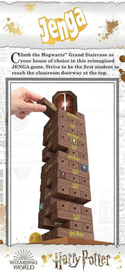 Featuring 54 high-quality stained wooden blocks where Hogwarts House markers – Gryffindor, Ravenclaw, Hufflepuff, and Slytherin – move to the top of the staircase in hopes of being the first to reach the classroom