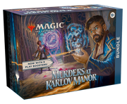 A series of shocking murders involving some of Ravnica’s most powerful citizens has the city on the verge of chaos. Now detectives are on the case . . . and you’re one of them. Return to the fan-favorite plane of Ravnica in Murders at Karlov Manor, Magic’s unique take on the murder mystery genre. This Murders at Karlov Manor Bundle contains 9 Murders at Karlov Manor Play Boosters, plus 1 Traditional Foil card with Bundle-exclusive alternate-art, 15 Traditional Foil Basic Land cards (5 with Full Art), 15 nonfoil Basic Land cards (5 with Full Art), 1 oversized Spindown life counter, 1 card storage box, and 2 reference cards. Each Play Booster contains 14 Magic: The Gathering cards and 1 Token/Ad card, Suspect Punchout card, or Art Card (Art Card found in 35% of packs). Every pack includes a combination of 1–4 cards of rarity Rare or higher and 3–6 Uncommon, 6–9 Common, and 1 Land cards. One card of any rarity is Traditional Foil. The Land card is also Traditional Foil in 20% of boosters, and a special bonus card from Magic’s history can be found in 12% of boosters. Rulebook not included.