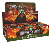 The Brothers’ War Set Booster Box contains 30 The Brothers’ War Set Boosters. Each Set Booster contains 12 Magic cards, 1 Art Card, and 1 token/ad card or card from “The List” (a special card from Magic's history—found in 25% of packs).