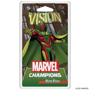 Orginially created by Ultron to destroy the Avengers, the android known as Vision joined the ranks of Earth’s mightiest heroes instead. Now he uses his incredible powers to protect the planet from danger as The Vision—and he’s phasing into players’ games of Marvel Champions: The Card Game. By manipulating his own mass to become dense or intangible, Vision can defeat any opponent. Within this Hero Pack, players will find Vision, his sixteen signature cards, and a full assortment of Protection cards inviting players to safeguard their friends.