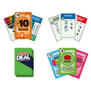 Swap, steal, and scheme with the Monopoly Deal card game! Be the first player to collect 3 complete Property card sets, each in a different color, to win. This deck includes 110 cards: Property cards, Wild Property cards, Action cards, and Money cards. Wild Property cards help players build Property sets. Action cards mix up the game by letting players collect rent, steal and swap properties, and more. And players pay their debts with Money cards. Easy to play and set up, this card game for ages 8 and up can be played in as little as 15 minutes! Whether you're searching for fun games for kids and adults, family games, or kids travel games, it’s a great pick for anytime play.