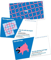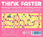 At the start of a round, three scoring cards are revealed, such as most aliens on a single road, most dogs visible, or longest road. All player then race to assemble their town in whatever pattern seems best, trying to score points for one, two, or three of the scoring cards as they wish. As soon as the first player decides that they're done, they flip the sand timer and everyone else has 90 seconds to complete their town, then players determine who scores for which cards, with ties being broken in favor of whoever finished first. Players score points based on the number of players in the game, and players track their score on a chart over multiple rounds.