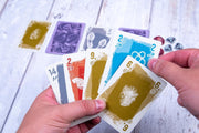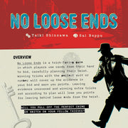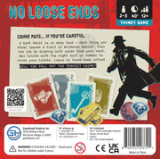 No Loose Ends is a trick-taking game in which players use cards from their hand to bid, carefully planning their heist. Winning tricks with the right suit or number will cover up the evidence in your bid and earn you points. Uncovered evidence and extra tricks not according to plan will lose you points for leaving loose ends from the robbery.