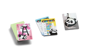 In Panda Panda, players carefully manage their cards to try to make specific hands. On a turn, players can discard a card, draw from the deck, or draw from an opponent's discard pile. If a player discards an "A" card, everyone has to pass one card to the right.