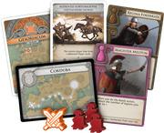 Contents: 1 Board, 3 Battle Dice, 7 Role Cards, 7 Pawns, 70 Player Cards, 7 Reference Cards, 49 Barbarian Cards, 100 Barbarian Cubes, 16 Legions, 6 Forts, 5 Alliance Tokens, 1 Invasion Rate Marker, 1 Decline Marker