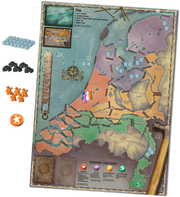 Contents: 7 Pawns, 7 Role Cards, 78 Player Cards, 56 Dike Failure Cards, 4 Hydraulic Structure Tokens, 1 Sea Level Marker, 1 Reminder Marker, 5 Reference Cards, 1 Population Loss/Setup Summary Card, 50 Dikes, 5 Pumping Stations, 12 Objective Cards, 36 Water Cubes, 36 Population Cubes, 5 Ports, 1 Board