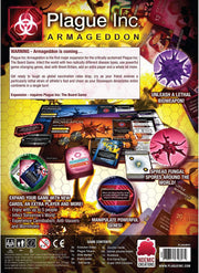 Plague Inc.: Armageddon, the first major expansion for Plague Inc: The Board Game, includes the fungus and bioweapon disease types, a new genetic modification game mechanism, support for an extra player, and new event, trait and endgame score bonuses.