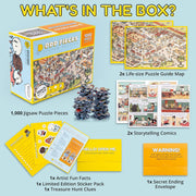 - Mystery Puzzles by Odd Pieces - A premier 1000 piece puzzle for adults, kids, and the whole family that blends elements from comics, Where's Waldo books, and mysteries to create the most exciting, brain teasing puzzling experience yet!