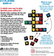 Qwirkle Cubes is a sequel of sorts to Qwirkle with the goal of the game being the same as before: Create rows and columns in which the tokens all match either in color or symbol in order to score points. Each time you add tokens to the playing area, you score points equal to the rows/columns that you create or add to. Close out a row by playing the sixth token in it, and you score six bonus points in addition to whatever else you score for the turn.