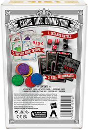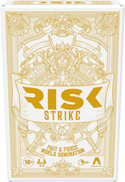 Fast and fierce world domination! Get off the board and right into the action with this Risk Strike cards and dice game, a fresh twist on the Risk board game! Gameplay is simple, but highly strategic. Declare which continent you want to attack, deploys your troops, and roll the dice to start battling. Use tactics cards to sabotage, bombard, spy, and more in pursuit of world conquest. Defeat your opponents in battle to conquer continents and earn domination coins. The first player to earn 2 domination coins wins! The Risk Strike game is an exciting blend of classic Risk gameplay and the raw emotions of fleeting alliances that can turn on you with the play of a card. It's a fun strategy card game for Family Game Night, and with a compact size, it makes a great travel card game for playing anytime, nearly anywhere! Risk, Avalon Hill, Hasbro and all related trademarks and logos are trademarks of Hasbro.