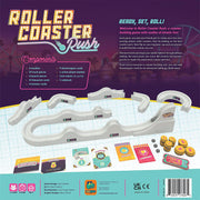 Welcome to Roller Coaster Rush, a coaster-building game with oodles of kinetic fun! Your goal is to design and construct the best roller coaster for your investors' theme park! At the start of each game, you design a model coaster using the blueprints you have available. During the game, you'll attempt to actually construct your model by winning auctions for the track pieces you used in your design.