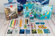Shinkansen Zero-Kei is a competitive game for 1 to 4 players where each player will represent one of the companies in charge of the construction of the new high-speed railway. To do this, each player will use cards to form their own individual set of actions, different from the rest of the players. Using their own actions and at times those of others, players will have to advance the construction of the Tokaido-Shinkansen line while participating in the construction of the different Olympic venues in search of the benefits they bring.