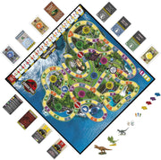 Hold onto your butts! A hurricane is closing in and the Park is in danger. In this The Game of Life Jurassic Park Edition board game, players race around Isla Neblar, collecting Dinosaur Eggs and rescuing Park Rangers as the storm advances and dinos escape! Jurassic Park fans will love the nostalgic nod to the film with blockbuster-inspired twits and turns. Move around the island and draw from interactive cards featuring quotes, characters, and iconic objects from the original film. Be careful! Hungry dinos lurk everywhere! Played in 15 rounds, players have 2 ways to escape the island. Who will play it safe and who will risk it all to save more Eggs and Rangers? Escape the island and get 1 point for every Egg token collected and 3 points for every Ranger in the SUV. The player with the most points wins. This family board game is for ages 8+, and it's a fun choice for a family game night. THE GAME OF LIFE and HASBRO and all related trademarks and logos are trademarks of Hasbro. © Universal City Studios LLC and Amblin Entertainment, Inc. All Rights Reserved.