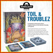 Compete to find and collect magical items. Powerful action cards will help or hinder you along the way. The stakes rise with each card played. Balance the desire for points wisely as you push your luck. Play it safe or risk it all in the contest for victory.